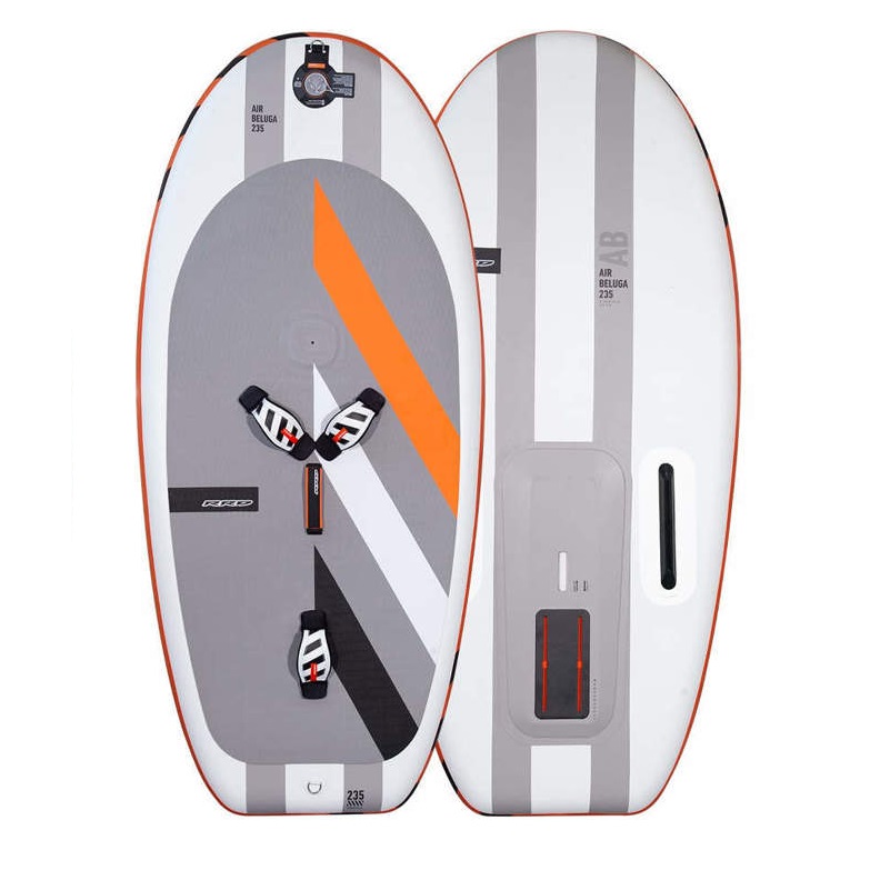 La nuova Air Beluga Y27 è la migliore tavola per progredire in tutta sicurezza e comfort. La gamma è stata completamente rinnovata introducendo nuove misure ed accessori per facilitare e ridurre della metà i tempi di apprendimento. La grande novità sono le 2 misure grandi con volume da 235 e 200 litri e con l’aggiunta delle nuove pinne laterali laterali rimovibili. Un volume così generoso permette di avere la stabilità necessaria per concentrarti sull’imparare come utilizzare il foil. Le pinnette laterali permettono di non scarrocciare sottovento che è la vera seccatura quando ti avvicini per la prima volta al wingfoiling.La piastra in carbonio è super leggera e rigida ed ha una forma trapezoidale per fornire una sensazione di controllo in volo pari a una tavola in composita. La Air Beluga Y27 utilizza due strisce di tessuto in PVC sulla parte superiore e inferiore per aumentare la rigidità ed ha una struttura in dropstitch leggero.4 misure, dalla più piccola 140 litri fino alla 235 litri, la Air Beluga è imbattibile per chi vuole imparare il wingfoiling e desidera il massimo comfort in viaggio e nessun problema di rottura della tavola.Viene fornita all’interno di un comodo zaino imbottito che ha spazio per la tavola, il foil, le ali ala e di tutti gli accessori per andare in acqua. Di serie vengono forniti un compressore a doppia azione e 3 straps ultraleggere.L’Air Beluga rappresenta la nuova entusiasmante evoluzione del wingfoiling. RRD 140,160,200,235.